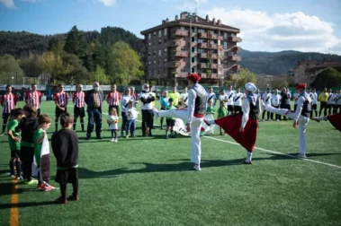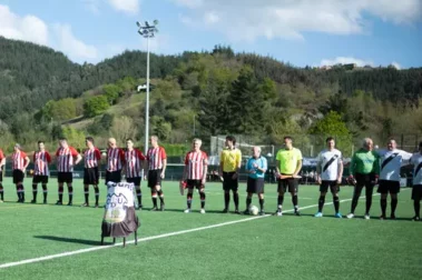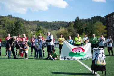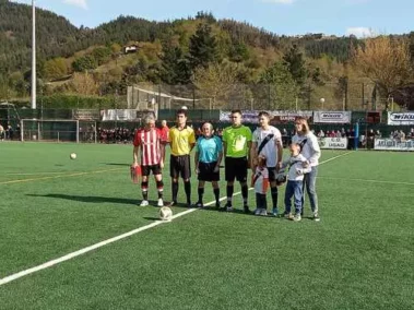 En primer lugar, nos gustaría agradecer al C.D. Ugao y al Athletic Club de Bilbao, así como a todos los jugadores allí presentes, el haber participado y haber hecho posible este bonito encuentro. El campo de Arandia estuvo repleto de público que se acercó a disfrutar del partido y disfrutaron tanto mayores como pequeños. Hodei e Ilargi protagonizaron el saque de honor y recibieron el cariño de la organización y de los jugadores, además de algunos obsequios por parte de los clubs. Y gracias al C.D.Mirandés, que tuvo un detalle con los pequeños antes del partido.
