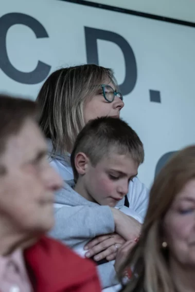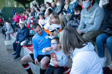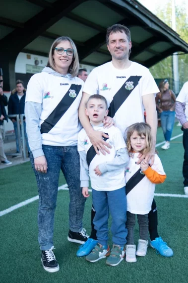 Desde primera hora de la mañana tuvimos la oportunidad también de poner una carpa con nuestro merchandising solidario en el acceso al campo de fútbol, y cabe destacar el gran número de personas que hasta allí se acercaron para hacerse con alguna de nuestras camisetas, sudaderas, y otros productos solidarios.